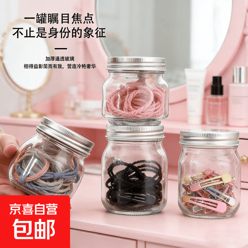 首饰盒玻璃密封罐方圆梅森瓶大口径蜂蜜瓶酱菜瓶杂粮密封储物罐 铁盖密封盖1个500ml