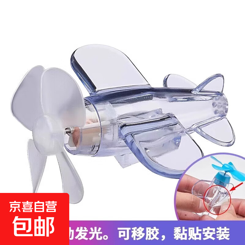 风力发电小飞机彩灯电动车摩托车风能LED亮光车载装饰汽车氛围灯 发光小飞机-透明色-1个