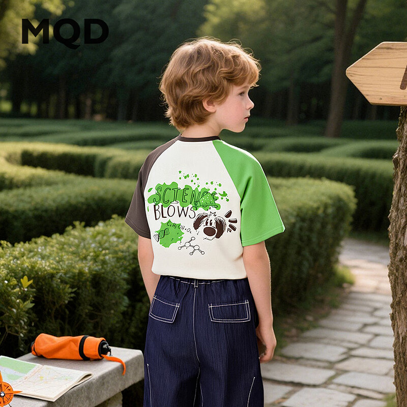 马骑顿(MQD)男大童夏季新品学院风撞色插肩袖卡通短袖上衣亲肤T恤跑步 草绿 130