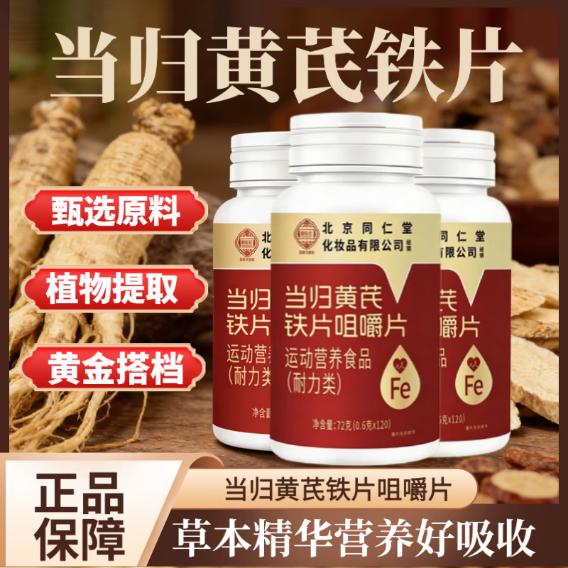 北京同仁堂当归黄芪铁片120片可搭补铁改善贫血男女补 【一瓶体验装】 120片*1瓶