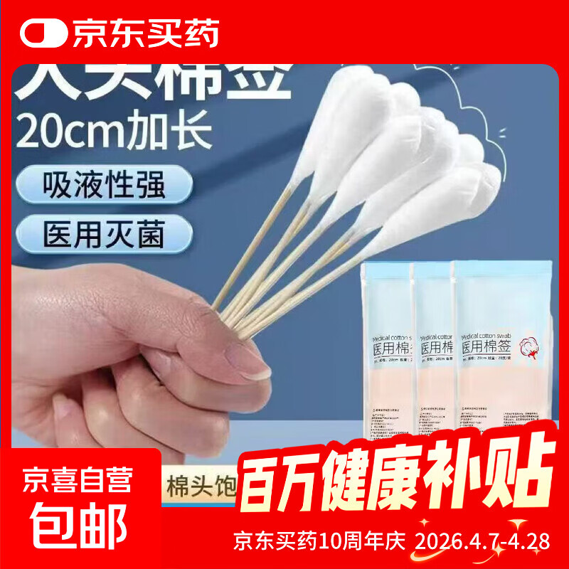 【妇科产妇无菌棉签】医用大棉签20cm无菌一次性棉头消毒大头棉棒 大头棉签20cm-一包20支