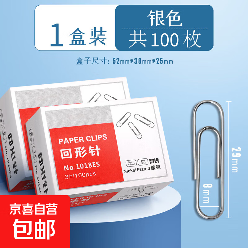 【特价专享】学生学习初中生高中用办公用品文具 镀镍防锈回形针 1盒【银色】共100枚