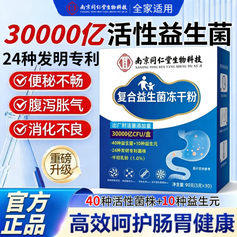 同仁堂益生菌冻干粉可搭肠胃脾胃虚弱肠道消化便秘屁多肠胃益生菌 【一盒试用装】 30条*1盒 肠胃益生菌