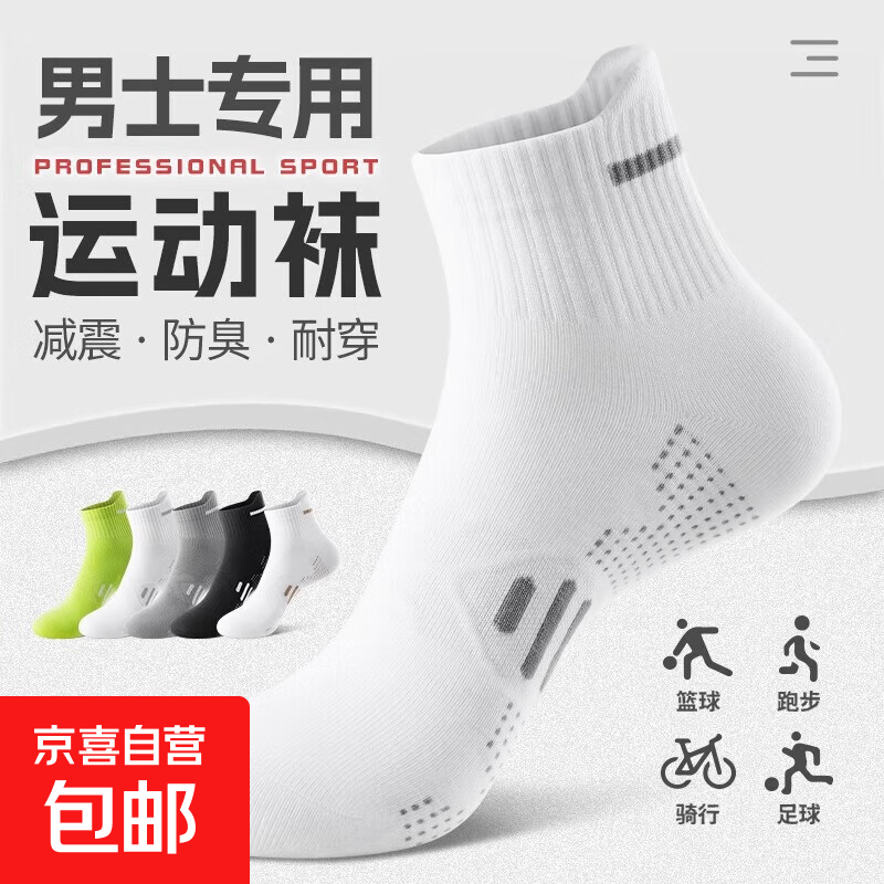 【多款可选】跑步袜子男士短袜防臭专业运动马拉松篮球毛巾底男 综训袜白灰色 3双装