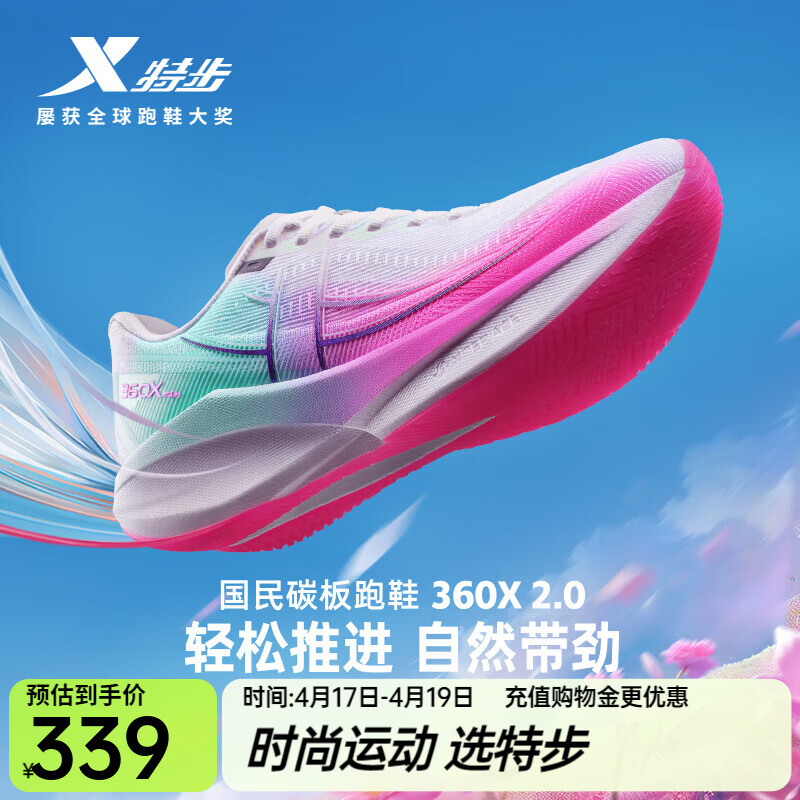 特步360X2.0竞训体考跑鞋男女碳板入门鞋减震稳定推进舒适透气运动鞋 经典白/荧光数码粉/天水碧【男】 41