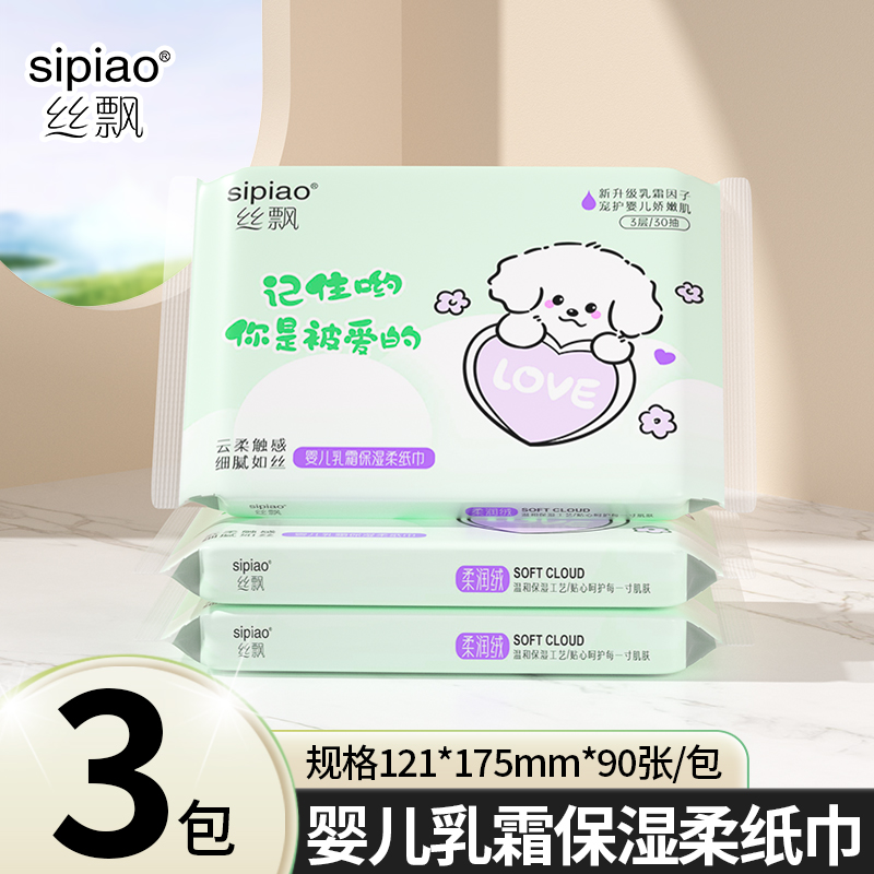 丝飘新生宝宝乳霜纸云柔巾擦手实惠装婴儿保湿家用便携抽取式