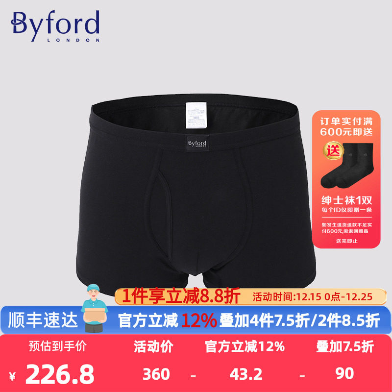 Byford/百富男士平角裤舒适棉弹平脚内裤四角裤男-MW38027