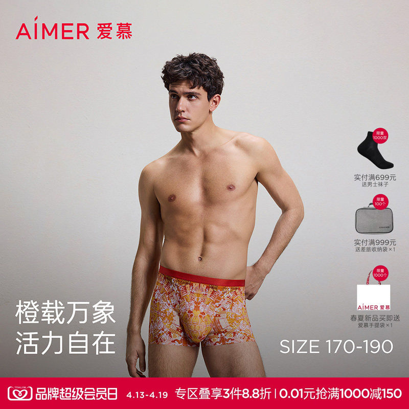 【USPACE】爱慕先生U型裤男士包腰数码印花平角内裤25春夏
