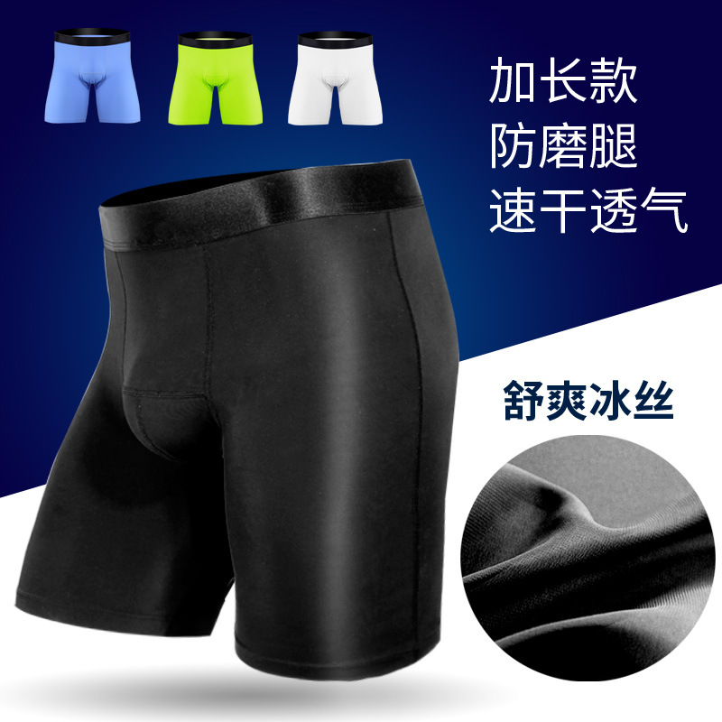 男士加长内裤男 冰丝运动防磨腿 提臀透气超大码肥胖高弹力平角裤