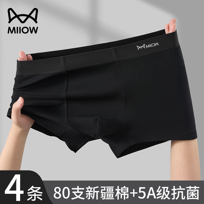 猫人黑色男士内裤男无痕莫代尔纯棉四角深色运动透气抗菌平角裤