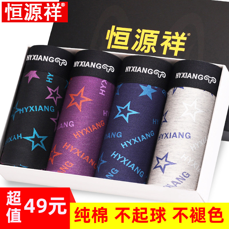 恒源祥男士内裤男纯棉质100%全棉中腰平角裤青少年透气四角内裤头