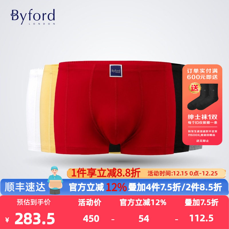 BYFORD/百富男士纯棉红内裤男中腰吸汗防闷四角裤送老公MW909