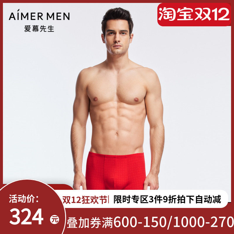 爱慕先生红色内衣男真丝中腰平角内裤NS23B041