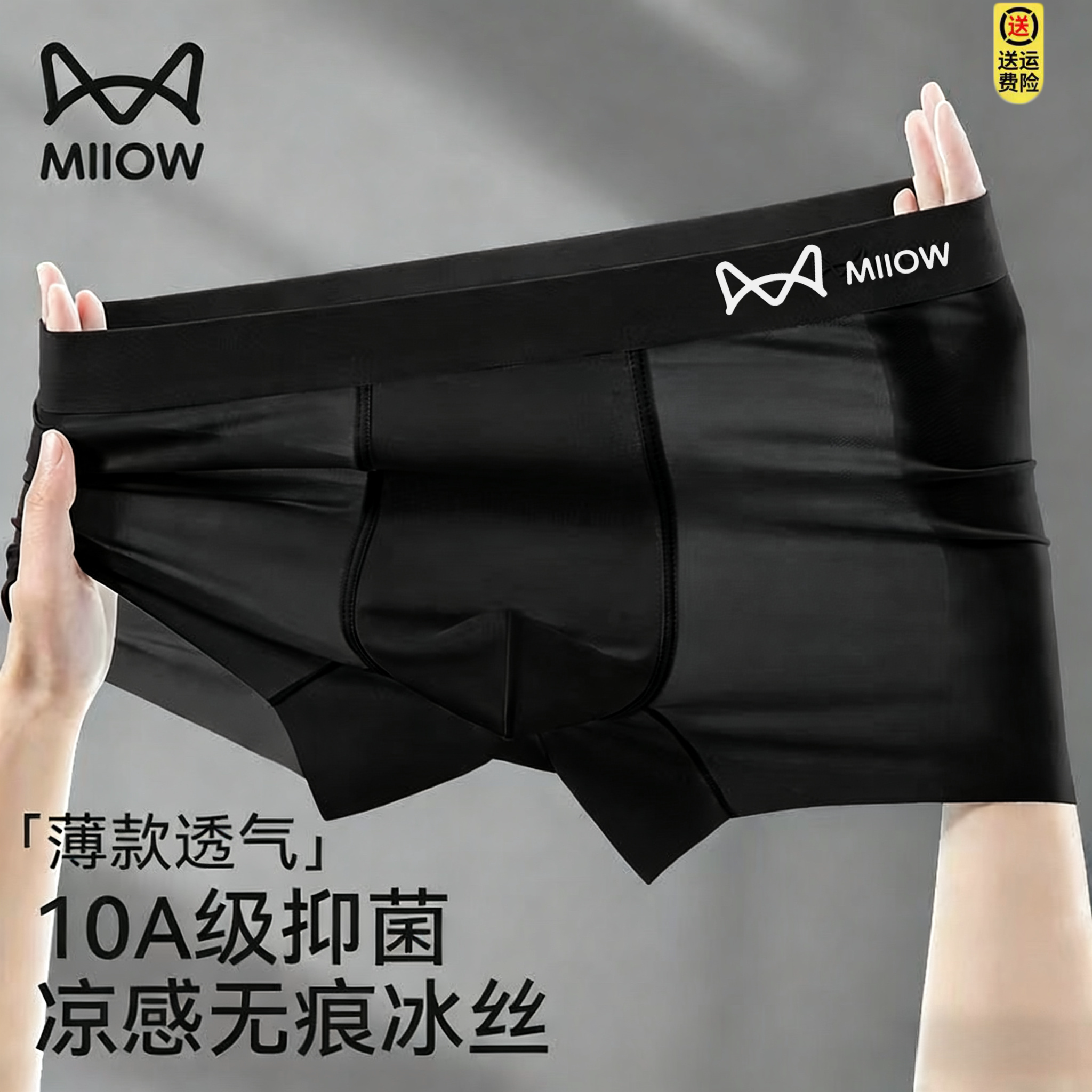 猫人男士内裤大黑色无痕冰丝石墨烯抗菌平角男生夏季透气四角短裤
