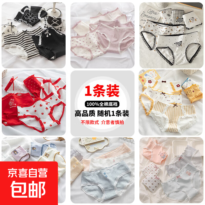 日系女士内裤女纯棉10A类女生中腰全棉档抗菌少女三角裤短裤批发 纯棉随机一条 L 【适合95-120斤】