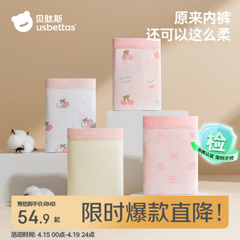 贝肽斯胎脂皮儿童内裤透气女童四角打底裤女宝宝内裤纯棉低敏抗菌4条装