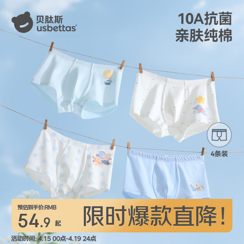 贝肽斯男童内裤儿童小男孩青少年四角裤抗菌透气纯棉a类不夹屁屁