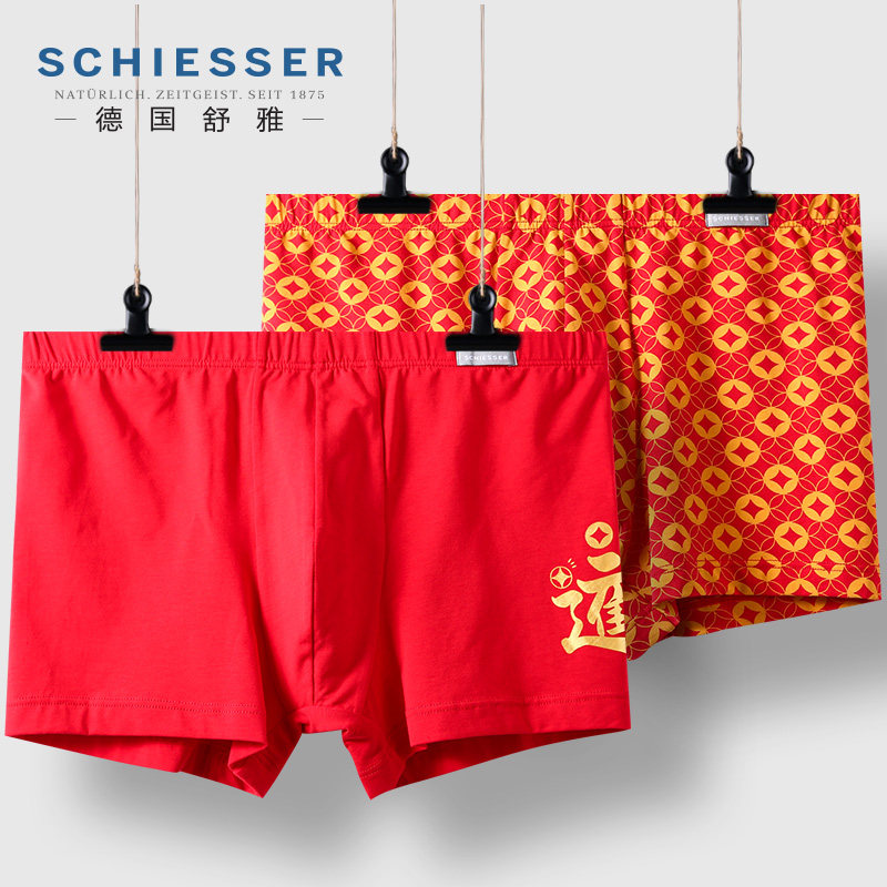 舒雅男士内裤纯棉平角裤舒美棉鸿运裤本命年大红内裤20647T两条装