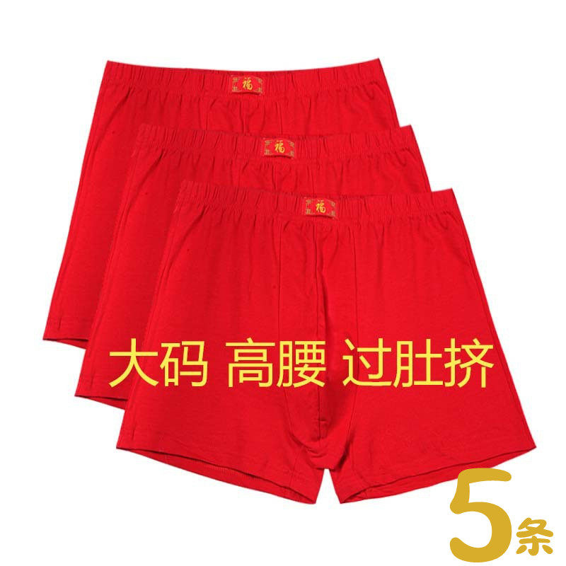 男士本命年大红色内裤纯棉高腰宽松大码过肚脐平角裤头中老年全棉