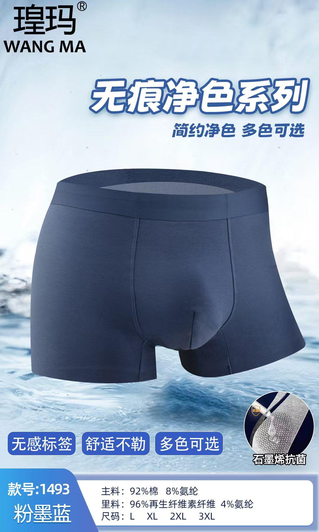 男士纯色1493纯棉中腰内裤无痕抗菌舒适透气