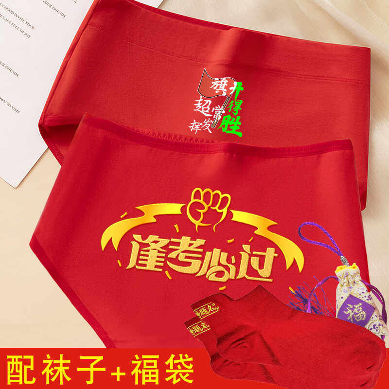新款前后图女生高考紫腚对大红金榜题名中考逢考必过纯棉内裤裤衩