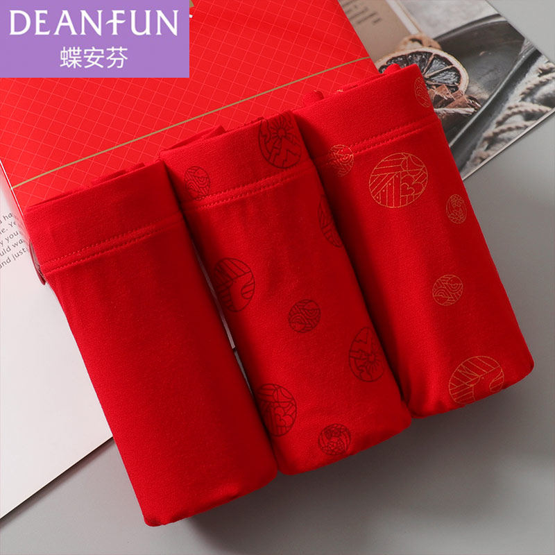 蝶安芬男士内裤男大红色本命年结婚喜庆中腰平角四角柔软内裤礼盒