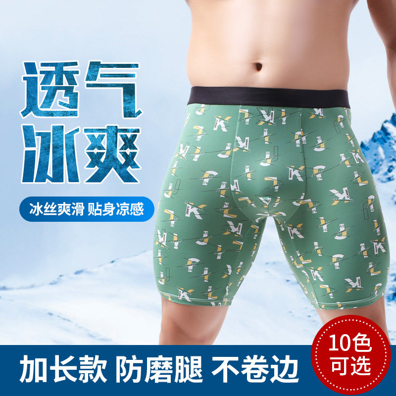 3件 加长防磨腿冰丝内裤士中腰大码透气跑步速干轻薄款长腿四角裤