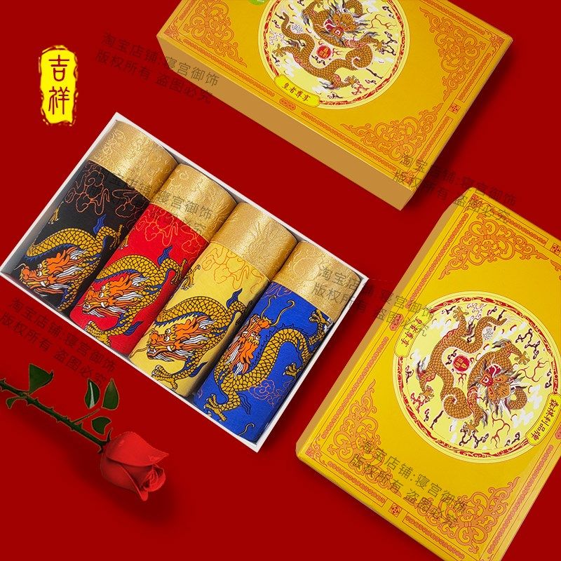 中国风龙纹内裤男士平角裤清朝皇帝透气国潮霸气个性礼盒四角裤头
