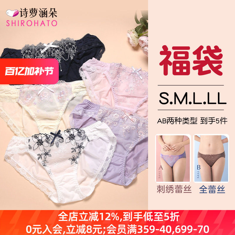 SHIROHATO诗萝涵朵日本内裤女福袋性感蕾丝低腰女士三角内裤5条