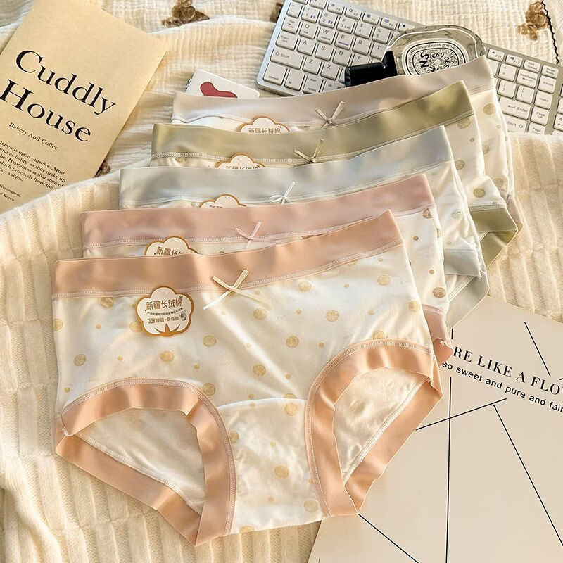 有只绵5条7A抗菌女士内裤中腰纯棉裆弹力包臀无痕三角内裤 五色组合 L 100-120斤