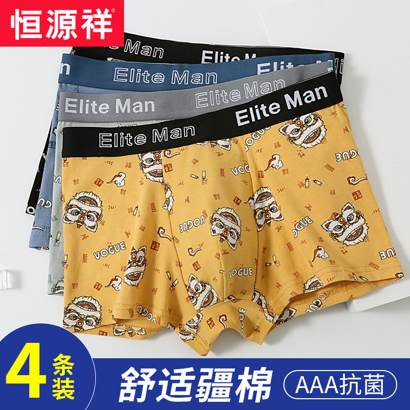 恒源祥男士内裤男纯棉平角裤印花透气四季抗菌短裤衩潮流四角裤头