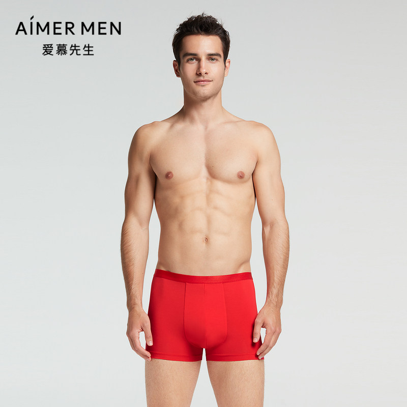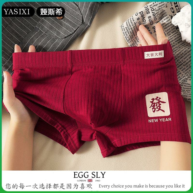 EGG SLY本命年红色男士内裤纯棉男生四角短裤夏季薄款男式平角裤
