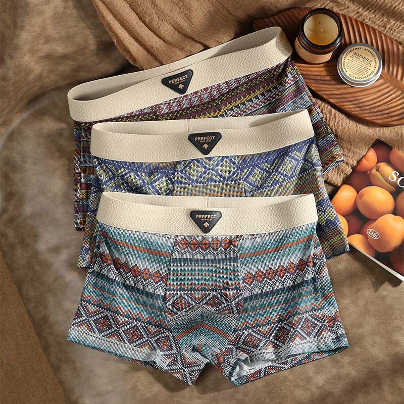 民族风男士内裤纯棉抗菌四角裤2025新款男式平角裤男生短裤衩男款