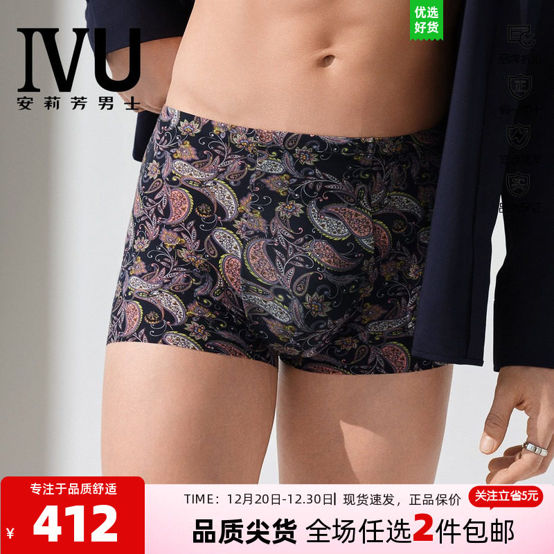 安莉芳旗下IVU2025专柜新款舒适弹力印花男士薄款内裤透气平角裤