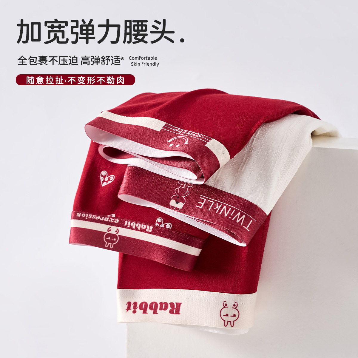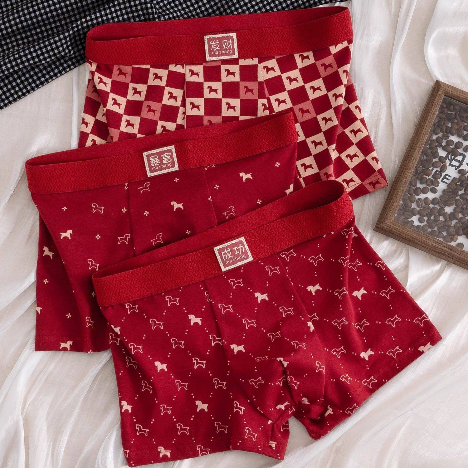 【下单立减50】爆款本命年男士内裤舒适透气平角裤结婚喜庆酒红JH