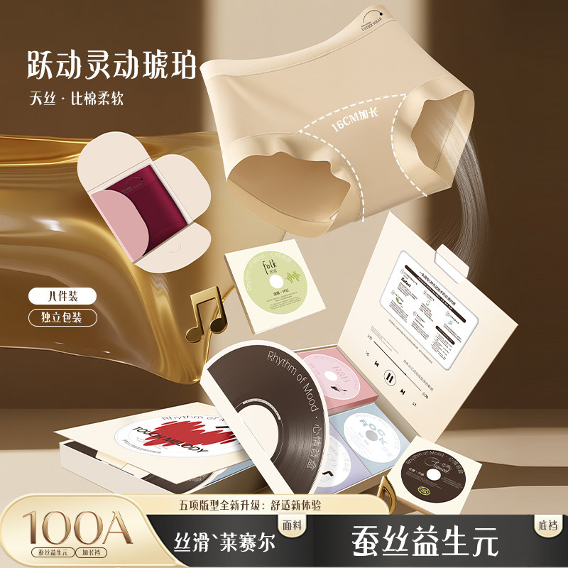 蕉轩中高腰无痕内裤女士天丝100A益生菌音乐盒独立包装三角裤新款