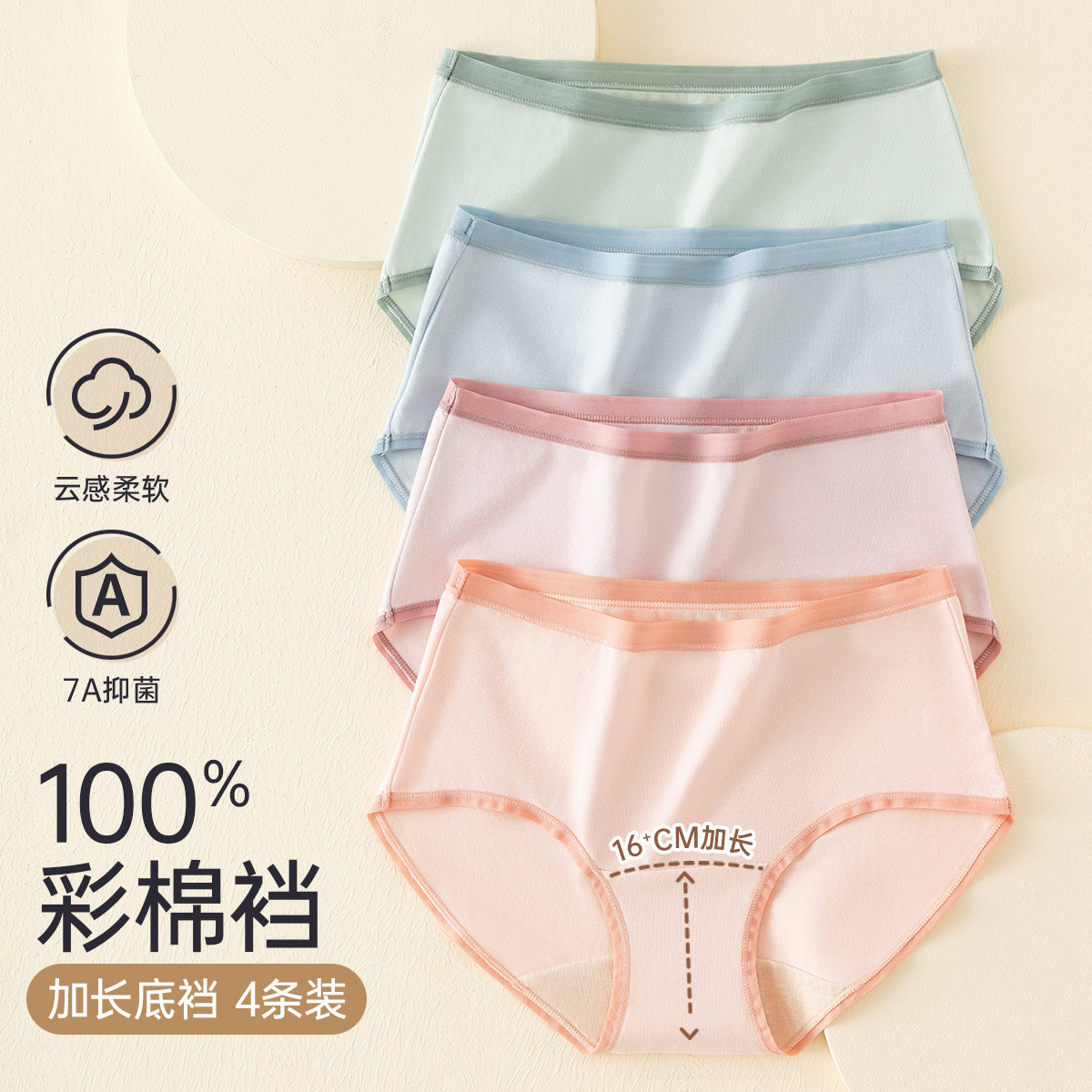 顶瓜瓜女士纯棉内裤透气抑菌彩棉底档中腰包臀三角短裤衩顶呱呱