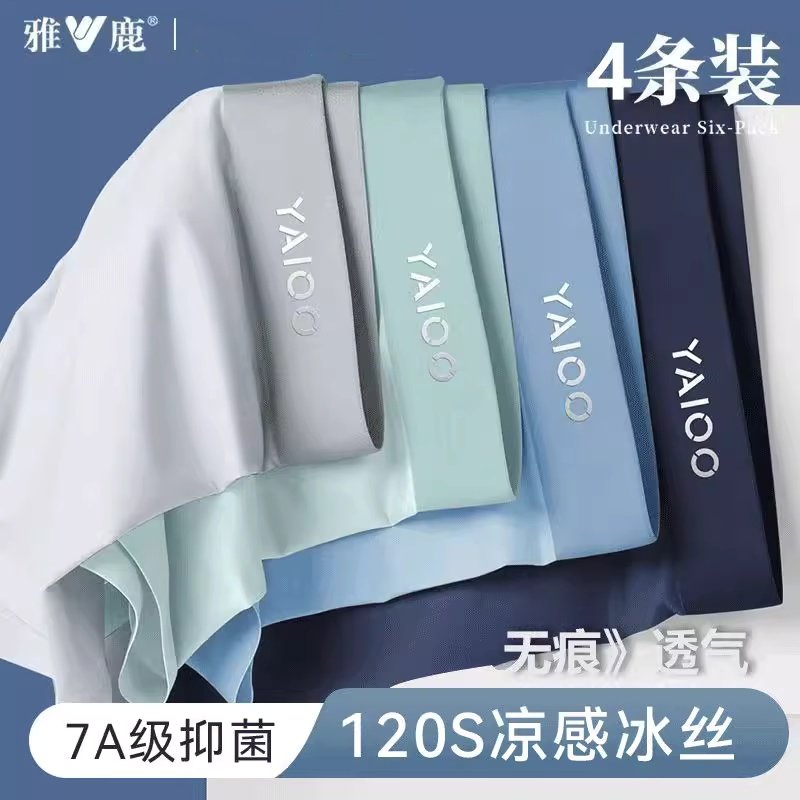 雅鹿男士内裤冰丝无痕抑菌裆四角短裤头青年男生平角裤衩透气抗菌