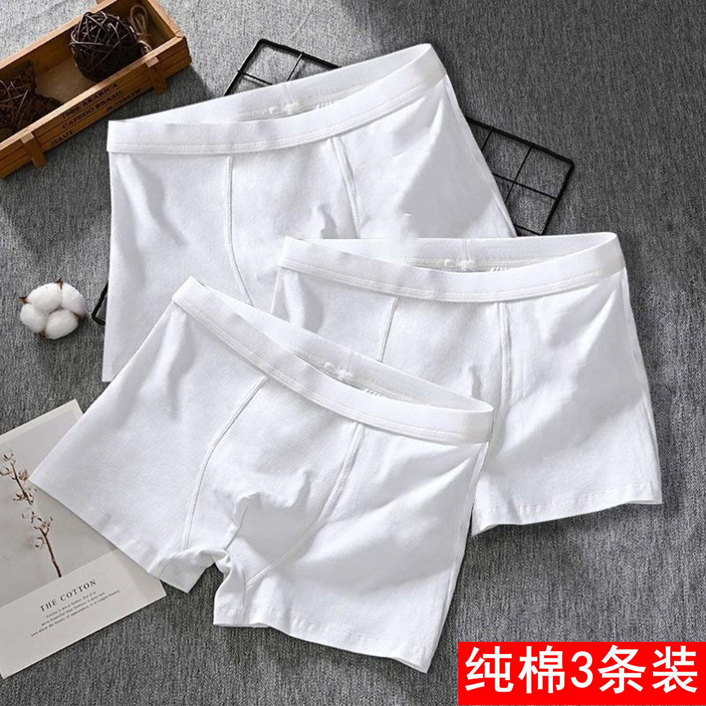 纯白色内裤男士纯棉平角裤头男款青少年学生短裤舒适透气四角裤衩
