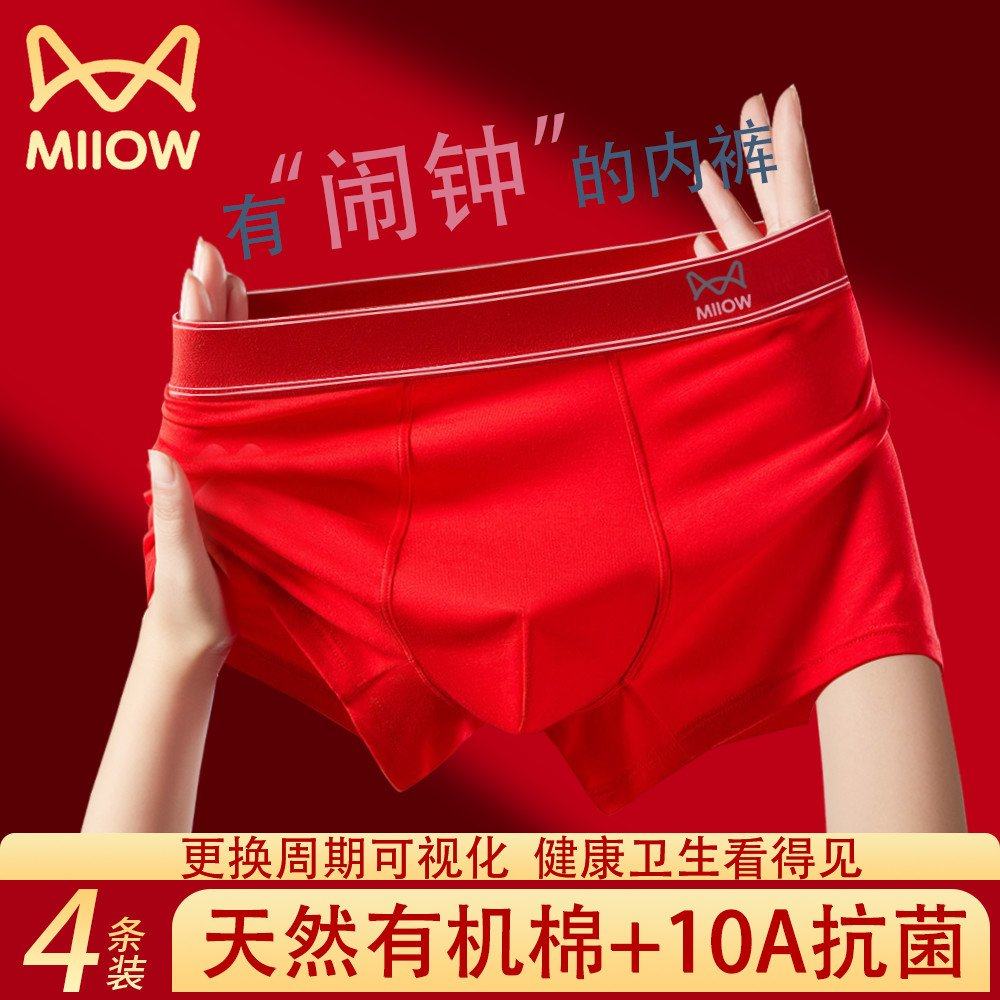 MiiOW/猫人纯棉男士无痕内裤本命年大红内裤男款生物焕新标平角短