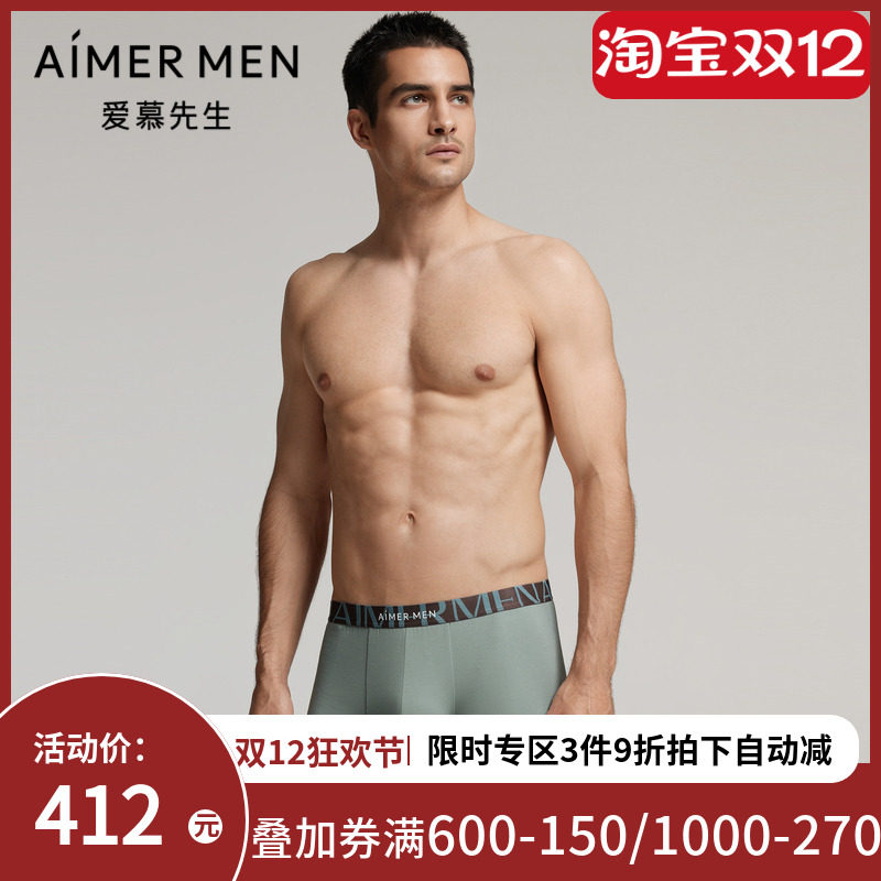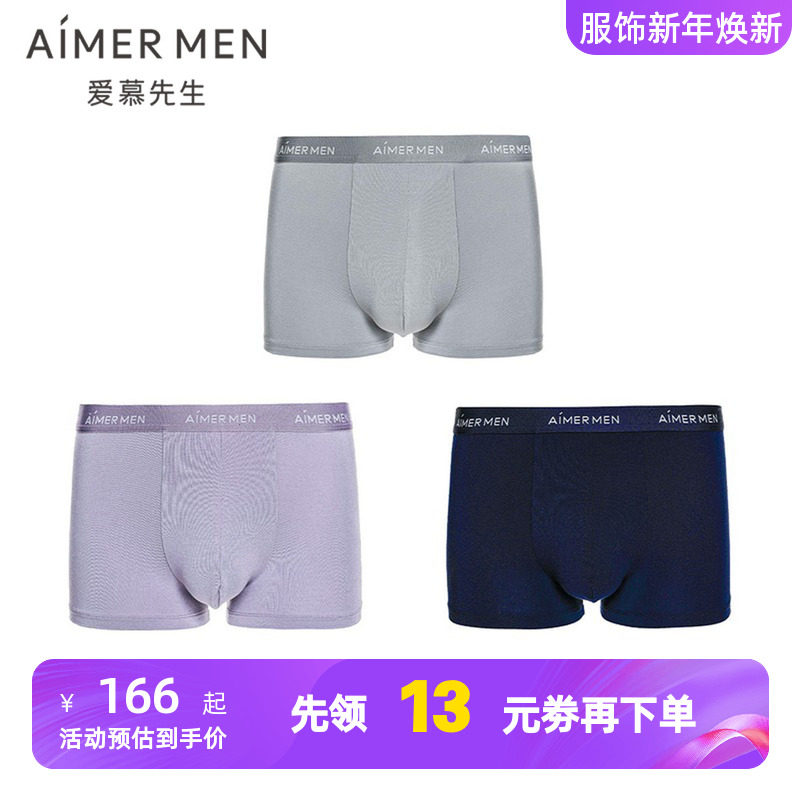 3条装 爱慕先生HELLO裤系列U型内裤男士薄舒适莫木代尔抗菌平角裤