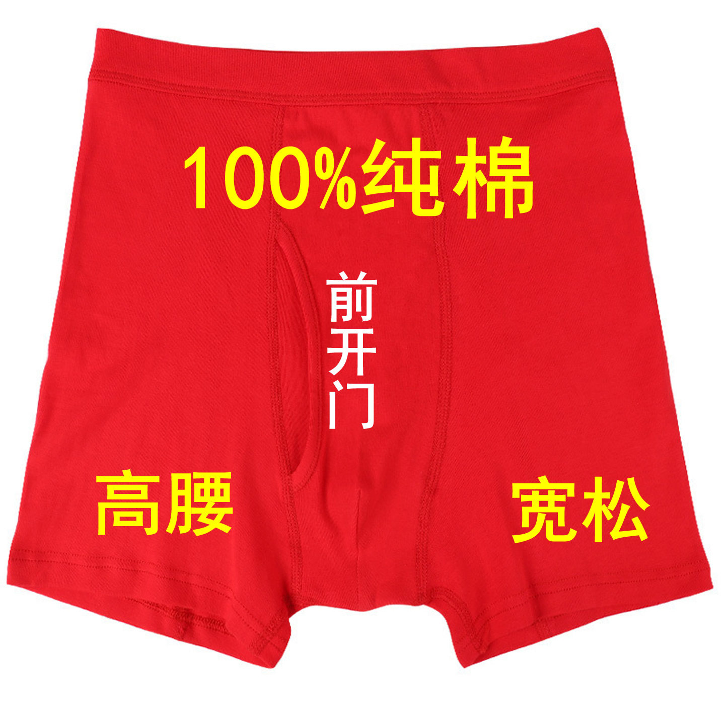 男士中老年内裤前开门纯棉高腰深档宽松本命年大红色全棉平角裤头