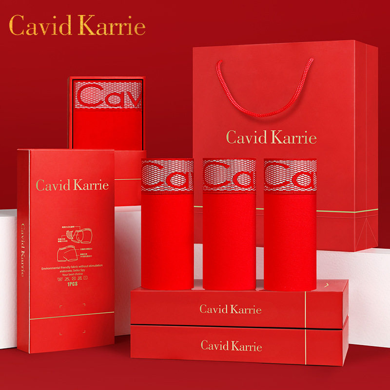 本命年纯棉男士内裤中腰透气鸿运送礼红内裤男平角裤礼盒