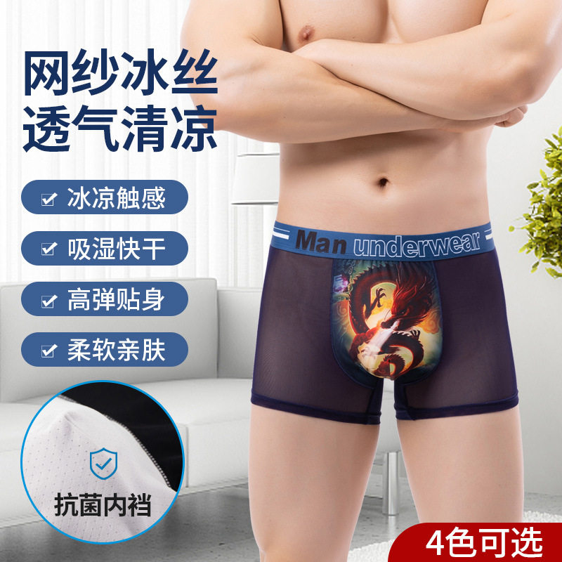 冰丝内裤男士透气轻薄款四角裤夏季速干性感大码透气印花龙平角裤