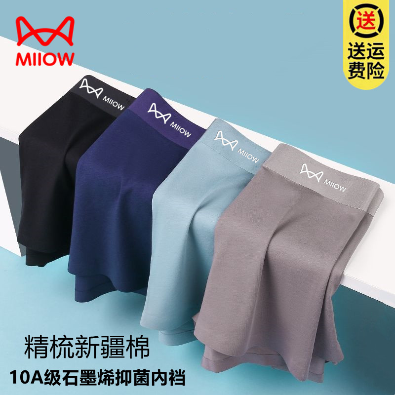 猫人男士内裤无痕纯棉石墨烯抗菌四季款平角男生运动透气四角短裤