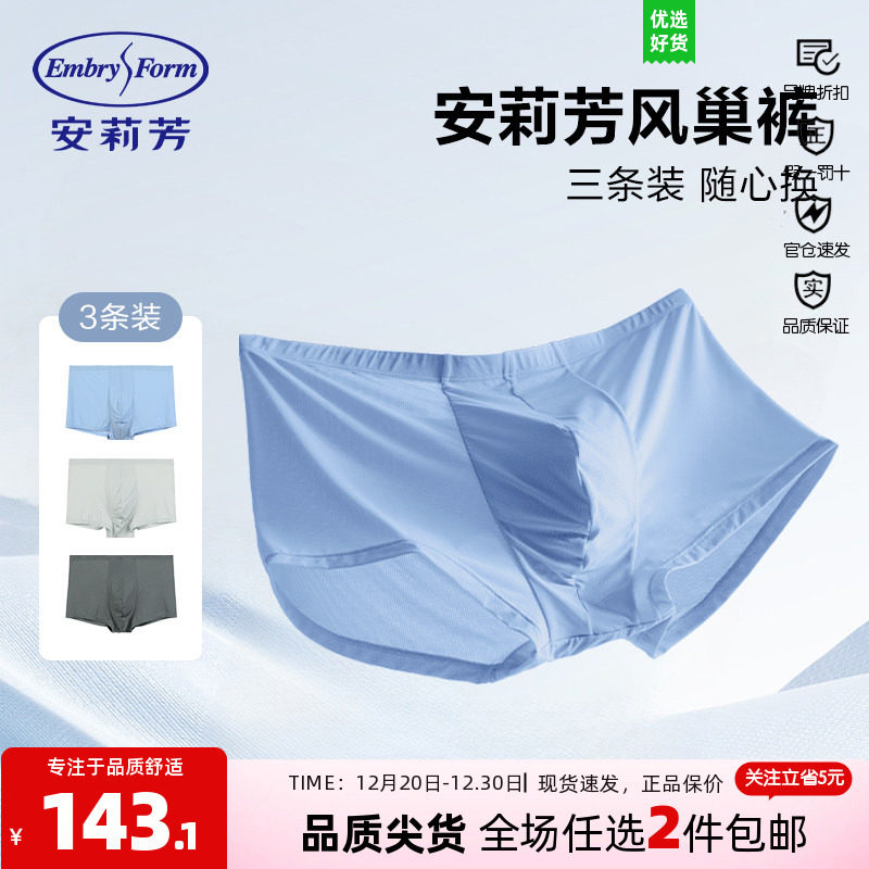 【风巢裤3条装】安莉芳男士高弹平角裤夏季轻薄舒适内裤EPW0305