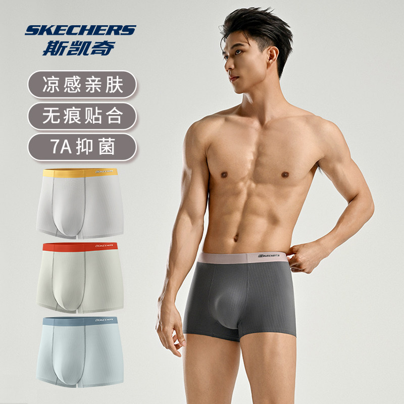 斯凯奇2025新款男士内裤薄款男生四角裤青少年抗菌透明运动平角裤