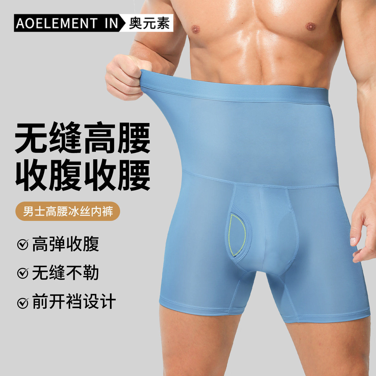 3条装男士运动内裤高腰收腹大码加长肥佬防磨腿男生平角冰丝短裤
