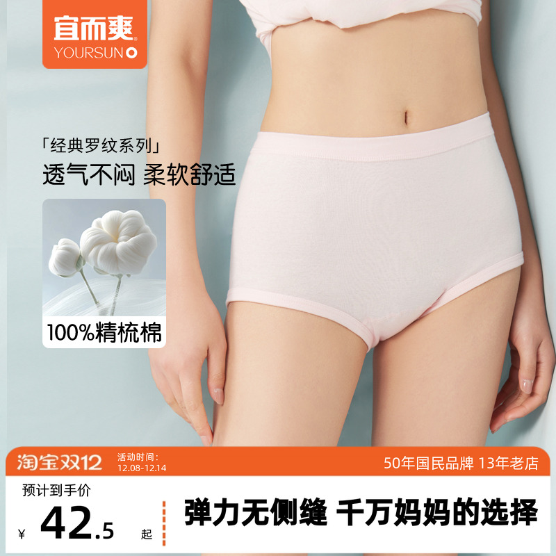 [3条]宜而爽女士内裤纯棉中高腰新疆100%棉宽松中老年妈妈三角裤