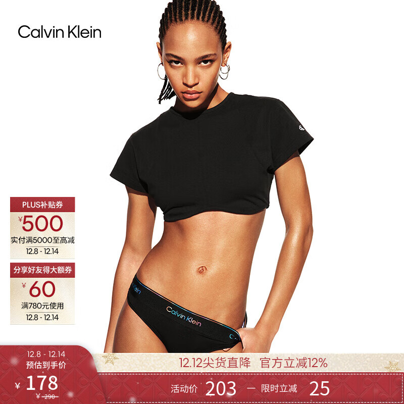 Calvin Klein内衣【摩登引力带】25女士炫彩提花ck棉质裆性感比基尼三角内裤女 UB1-太空黑 1条 S